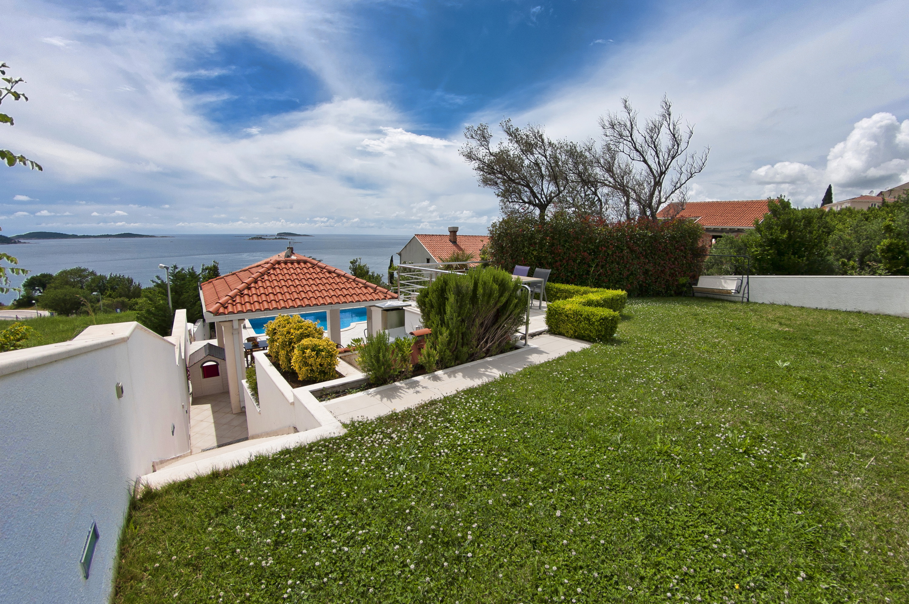 Behind the villa is swimming pool with amazing sea view. The villa has garagge for two cars and parking in front.